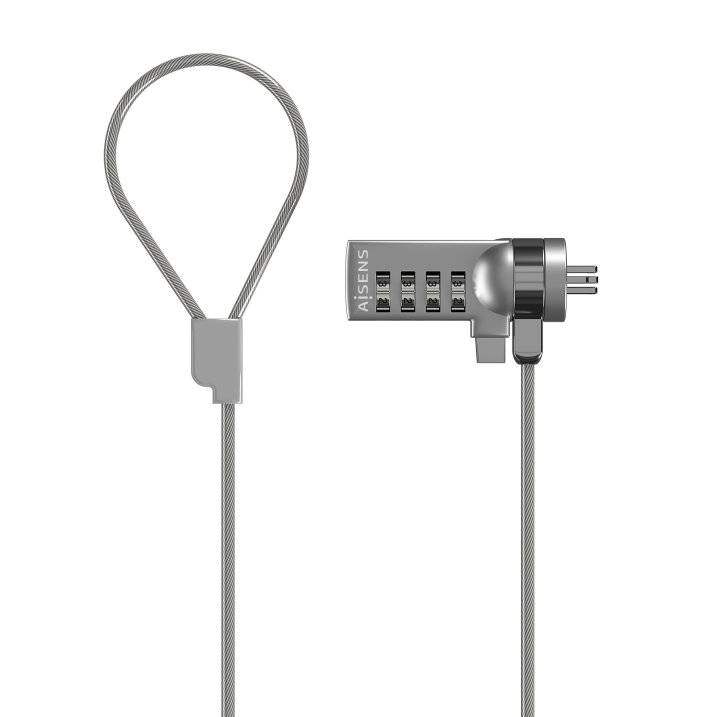 AISENS Cable de Seguridad con Cerradura de Combinacion para Ordenador, Monitor, Portatil 1.5M, 1,5 m, Kensington, Cerradura con combinaci?n, Acero, Plata