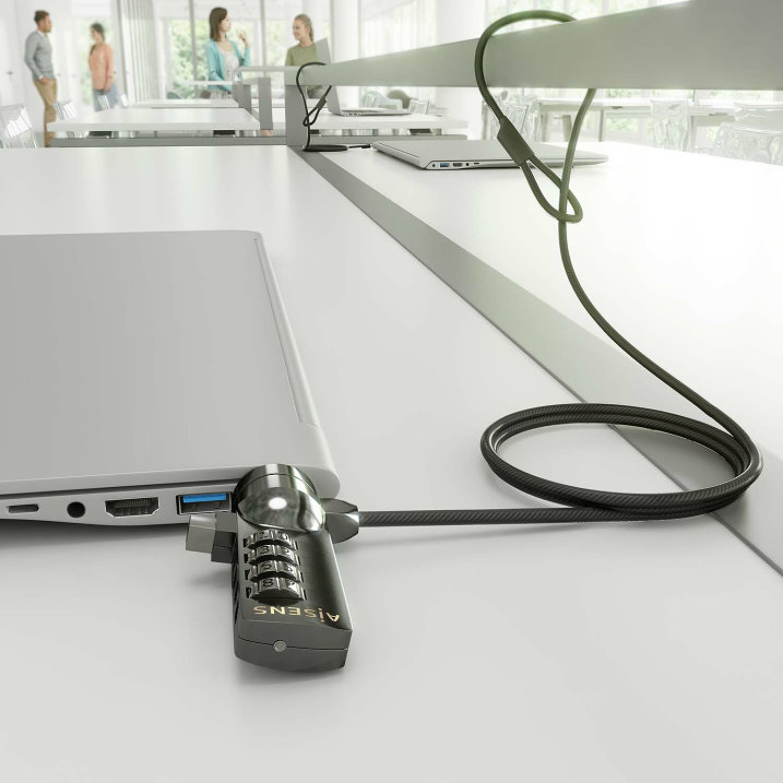 AISENS Cable de seguridad con cerradura de combinaci?n para Ordenador, Monitor, Port?til 1.5m, 1,5 m, Kensington, Cerradura con combinaci?n, Acero, Negro