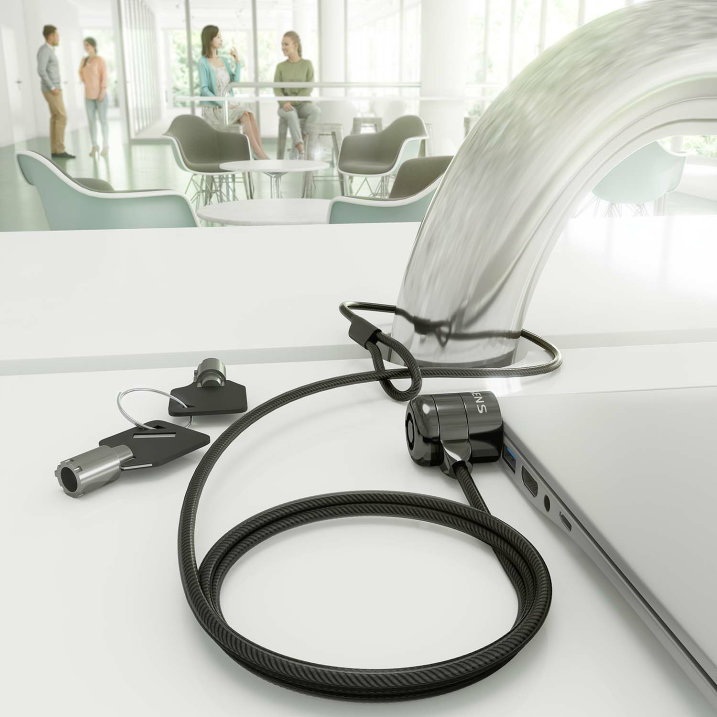 AISENS? ? Cable de seguridad de acero con cerradura de llave para ordenador, monitor, port?til etc.