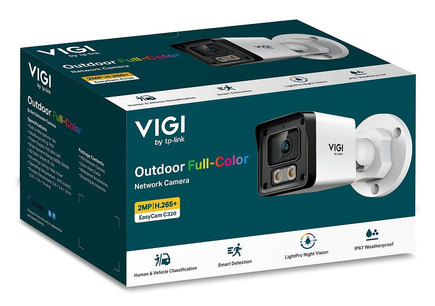 TP-Link EasyCam C320. Tipo: C?mara de seguridad IP, Colocaci?n soportada: Exterior, Tecnolog?a de conectividad: Al?mbrico. Tipo de montaje: Techo/Pared/Poste, Color del producto: Blanco, Factor de forma: Bala (forma). Iluminaci?n m?nima: 0,005 lx, ?ngulo de rotaci?n: 360?, ?ngulo de visi?n de la lente, horizontal: 49.8?. Tipo de sensor: CMOS, Tama?o del sensor ?ptico: 25,4 / 3 mm (1 / 3"). Distancia de detecci?n: 89 m, Distancia de observaci?n: 37 m, Distancia de reconocimiento: 18 m
