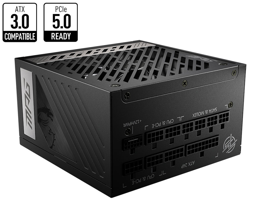 MSI MPG A850G PCIE5. Potencia total: 850 W, Voltaje de entrada AC: 100 - 240 V, Frecuencia de entrada AC: 50 - 60 Hz. Alimentador de energ?a para tarjeta madre: 24-pin ATX, Longitud del cable de alimentaci?n de la placa base: 60 cm, Longitud del cable de alimentaci?n SATA: 950 mm. Utilizar con: PC, Factor de forma de fuente de alimentaci?n (PSU): ATX, Certificaci?n 80 PLUS: 80 PLUS Gold. Color del producto: Negro, Tipo de enfriamiento: Activo, Di?metro de ventilador: 13,5 cm. Ancho: 150 mm, Profundidad: 150 mm, Altura: 86 mm