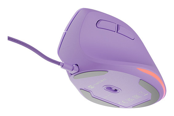 NATEC Crake 2 Pro. Factor de forma: mano derecha, Dise?o vertical. Tecnolog?a de detecci?n de movimientos: ?ptico, Interfaz del dispositivo: USB tipo A, Resoluci?n de movimiento: 12800 DPI, Velocidad de cuadro: 7000 pps, Tipo de botones: Botones presionados, Cantidad de botones: 6, Tipo de desplazamiento: Rueda, Aceleraci?n (m?x.): 20 G. Iluminaci?n de color: Azul, Verde, Rojo. Fuente de energ?a: Cable. Color del producto: P?rpura