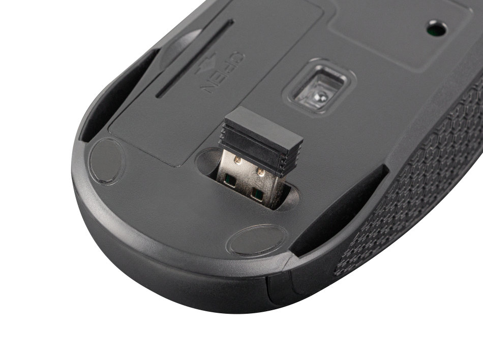 NATEC Jay 2. Factor de forma: Ambidextro. Tecnolog?a de detecci?n de movimientos: ?ptico, Interfaz del dispositivo: RF inal?mbrico, Resoluci?n de movimiento: 1600 DPI, Tipo de botones: Botones presionados, Cantidad de botones: 4, Tipo de desplazamiento: Botones. Fuente de energ?a: Bater?as. Color del producto: Negro