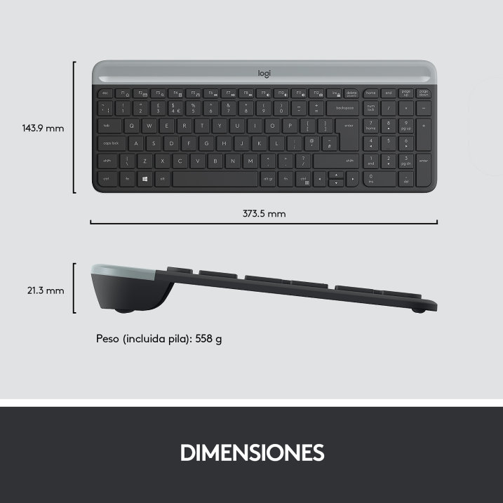 Logitech 920-009198. Formato del teclado: Completo (100%). Estilo de teclado: Derecho. Tecnolog?a de conectividad: Inal?mbrico, Interfaz del dispositivo: RF inal?mbrico, Dise?o de teclado: QWERTY, Uso recomendado: Universal. Color del producto: Grafito. Rat?n incluido