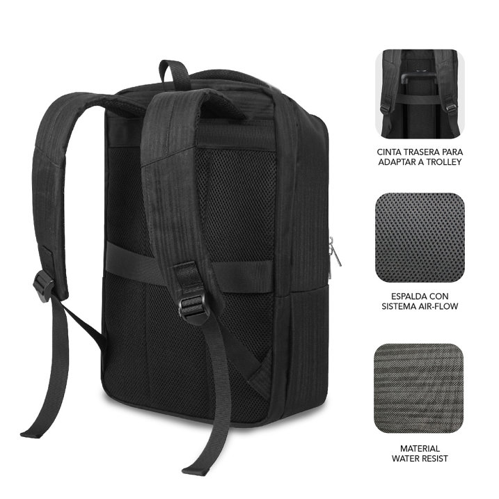 Mochila especialmente diseñada para el mundo laboral y de los negocios. Gracias a su altísima calidad y comodidad, se convierte en tu mejor aliado de movilidad para ir con ella a cualquier lugar. Forma parte de la exclusiva gama Air Padding de SUBBLIMcon lo que tu portátil estará especialmente protegido. A todo ello se le suman diferentes departamentos y bolsillos para transportar todos tus accesorios, documentos o enseres personales. Ha sido fabricada con unos resistentes materiales que repelen el agua y cuenta con un puerto externo de carga USB para que puedas suministrar energía a tus dispositivos.