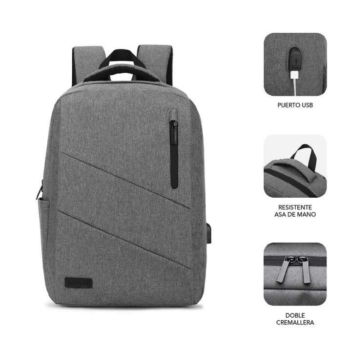La mochila para port?til Subblim City Backpack de 15,6? resulta imprescindible en todos tus viajes o desplazamientos. Facilita el transporte de tu ordenador de forma segura gracias al exclusivo compartimento acolchado as? como los diferentes bolsillos para los accesorios m?s utilizados y documentos. Su comodidad en el transporte est? asegurada gracias a sus correas para el hombro que distribuyen uniformemente el peso en la espalda as? como el asa de mano acolchada. Con un dise?o actual y funcional, ha sido fabricada con unos resistentes materiales que repelen el agua. Cuenta con un puerto externo de carga USB para que puedas suministrar energ?a a tus dispositivos.