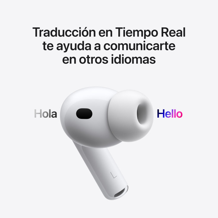 AirPods Pro 3. Hasta el doble de cancelaci?n activa de ruido que los AirPods Pro 2. Ahora con medici?n de frecuencia cardiaca, Traducci?n en Tiempo Real, mayor autonom?a y grandes avances para la salud auditiva. Redise?ados para ofrecer un encaje perfecto.