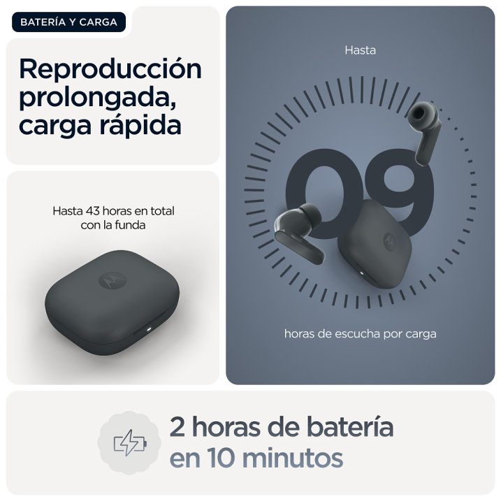 Motorola Moto Buds Bass, True Wireless Stereo (TWS), Llamadas/M?sica, 51 g, Auriculares, Negro