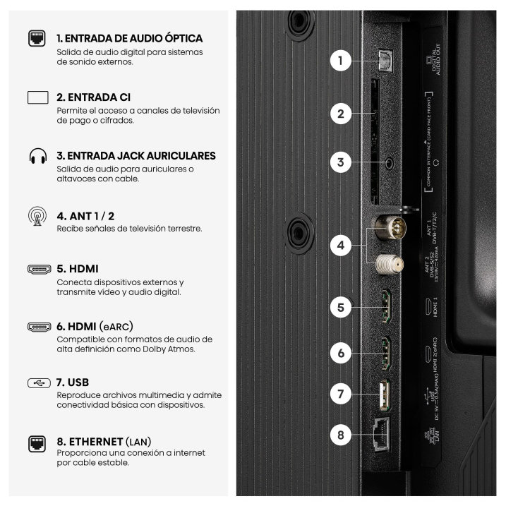 | Aplicaciones de v?deo | YouTube, Amazon Prime Video, Netflix, Disney+, DAZN, Movistar |