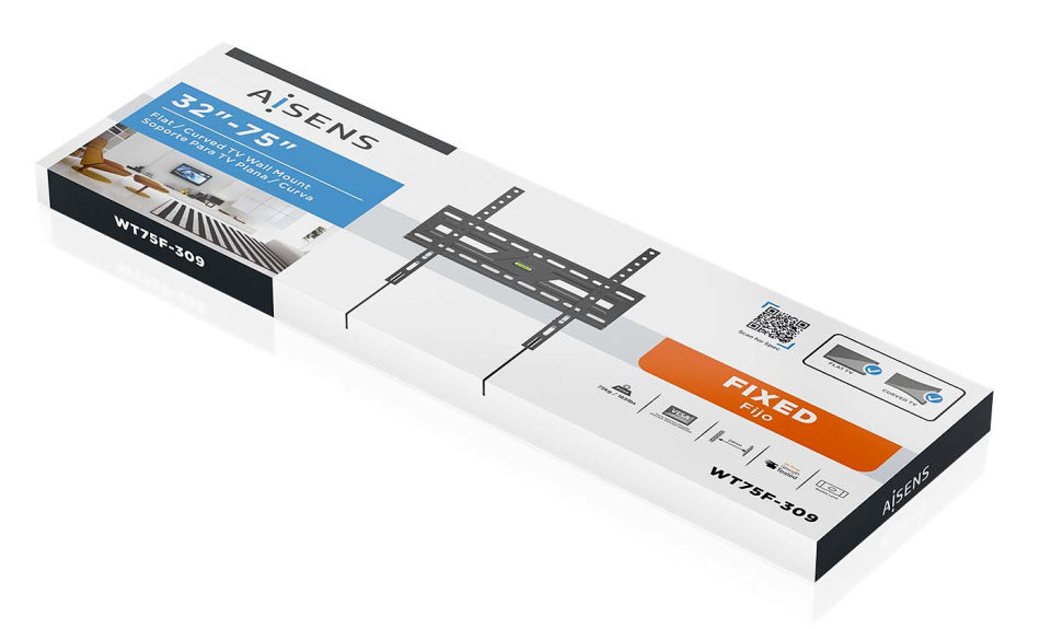 AISENS Soporte eco ultra delgado para monitor/TV 75kg de 32-75, Negro, 81,3 cm (32"), 190,5 cm (75"), 50 x 50 mm, 400 x 400 mm, Acero, Negro