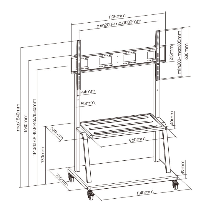 Ewent EW1541, 150 kg, 139,7 cm (55"), 3,05 m (120"), 200 x 200 mm, 1000 x 600 mm, 1140 - 1530 mm