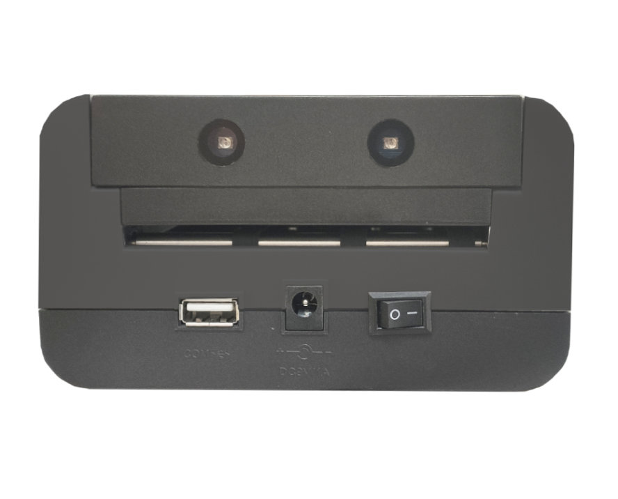 También incorpora dos lámparas de luz UV para verificación de documentos oficiales (DNI, Pasaporte...) o billetes.