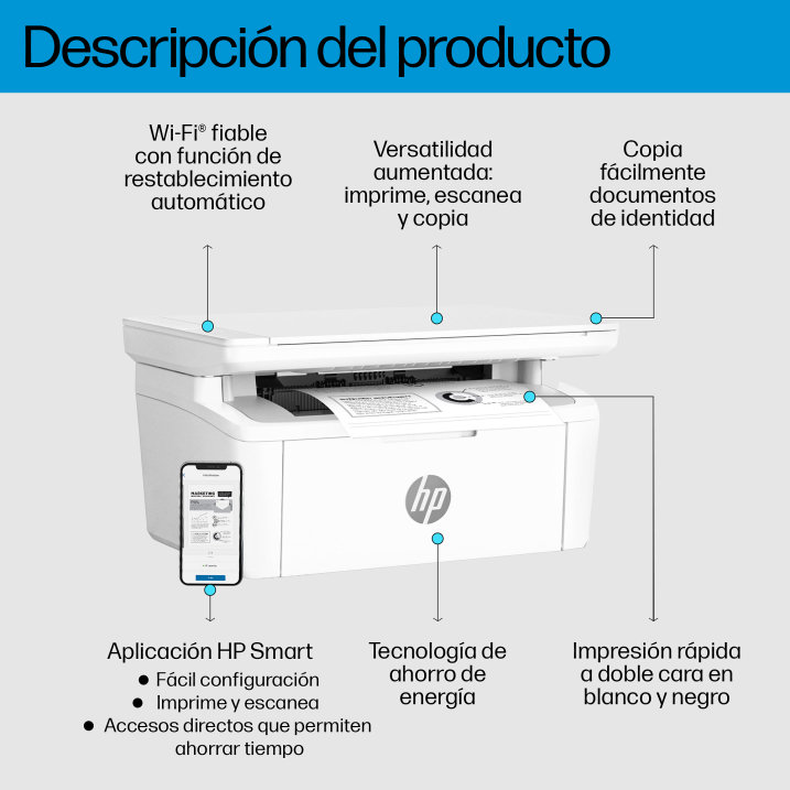 Disfruta de un rendimiento eficiente con la impresora l?ser multifunci?n m?s peque?a de HP.