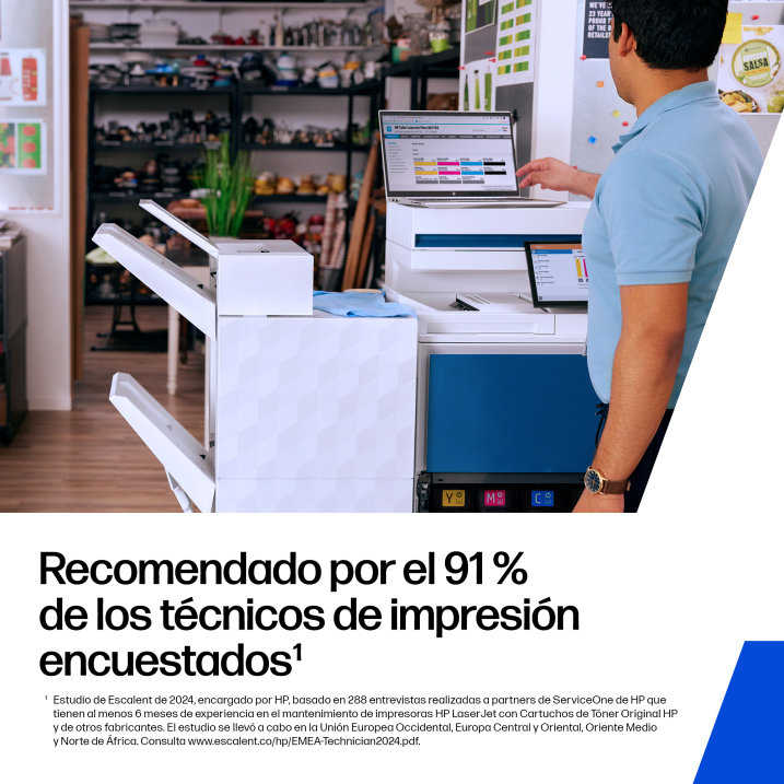 Imprime documentos en colores intensos con los cartuchos de t?ner Originales HP con JetIntelligence dise?ados para la impresora. Selecciona las opciones de alta capacidad para grandes vol?menes de impresi?n[1] y la protecci?n frente a falsificaciones con la tecnolog?a antifraude de HP.