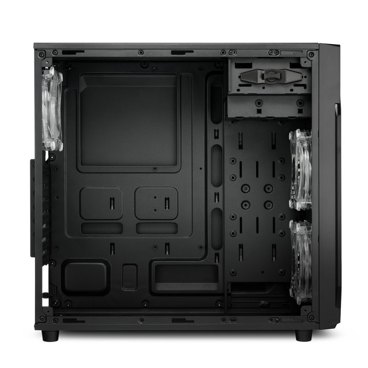 La semitorre ATX VG6-W RGB destaca por su dise?o retro-futurista del panel frontal y por tener un dise?o compacto creado para gamers sensibles al precio y a la refrigeraci?n por aire. De esta manera, vienen ya preinstalados 3 ventiladores LED RGB de 120 mm, que no s?lo proporcionan un ambiente colorido detr?s de la ventana acr?lica del panel frontal y lateral, sino adem?s garantizan un flujo de aire sin problemas.