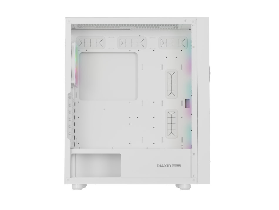 GENESIS Diaxid 605 ARGB. Factor de forma: Midi Tower, Tipo: PC, Color del producto: Blanco. Ubicación de fuente de alimentación: Fondo, Factores de forma de la fuente de alimentación compatibles: ATX. Ventiladores frontales instalados: 3x 120 mm, Diámetro de ventiladores frontales soportados: 120,140 mm, Ventiladores traseros instalados: 1x 120 mm. Tamaños de disco duro soportados: 2.5,3.5". Ancho: 217 mm, Profundidad: 420 mm, Altura: 466 mm