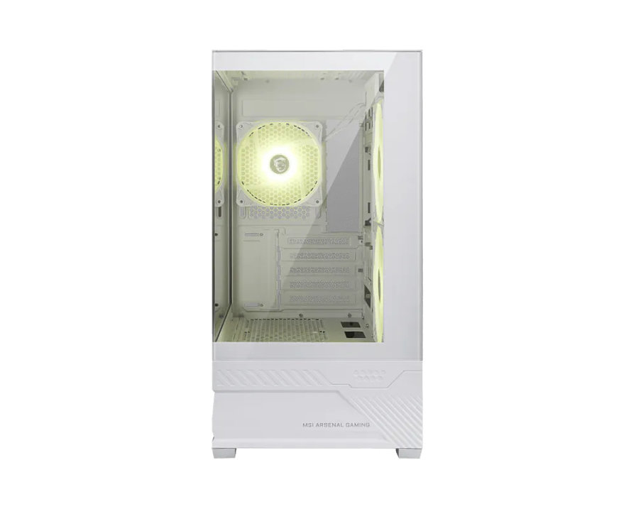 MSI MAG PANO M110R. Factor de forma: Mini Tower, Tipo: PC, Color del producto: Blanco. Ubicaci?n de fuente de alimentaci?n: Fondo. Ventiladores laterales instalados: 3x 120 mm, Di?metro de ventiladores secundarios soportados: 120 mm, Ventiladores traseros instalados: 1x 120 mm. Tama?os de disco duro soportados: 2.5,3.5". Ancho: 225 mm, Profundidad: 434 mm, Altura: 444 mm