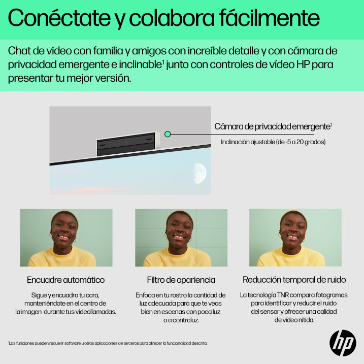 Dise?ado para una colaboraci?n real gracias a una c?mara de privacidad emergente abatible[4], micr?fonos duales y reducci?n de ruido avanzada.