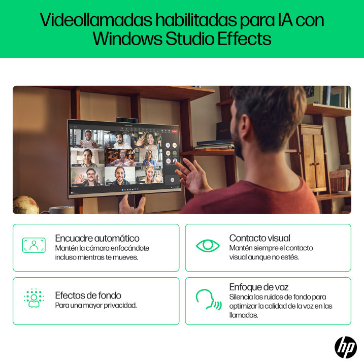 Trabaja o juega sin problemas gracias a una c?mara de 5 MP[2] con efectos de Windows Studio y un monitor inmersivo y din?mico.