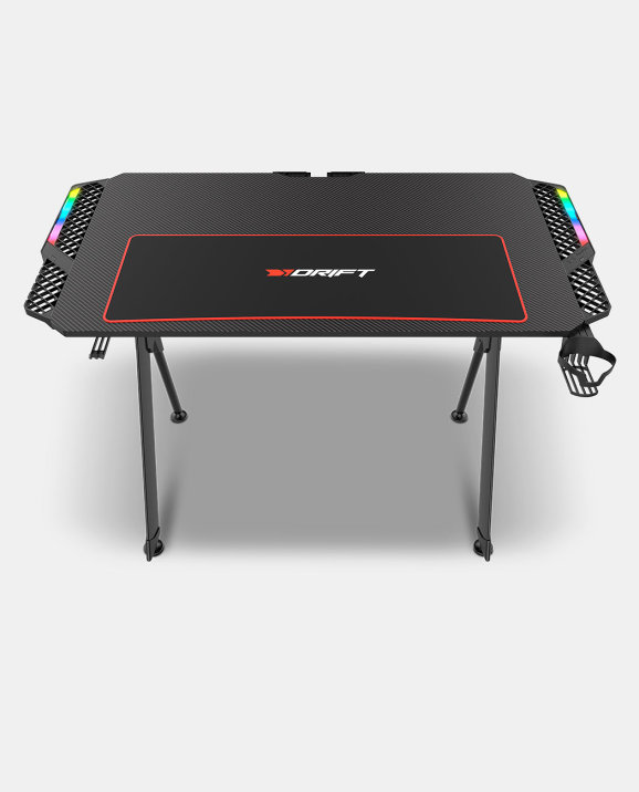 Su tamaño compacto de 116 x 60 x 75 cm hace que se adapte a cualquier espacio sin problemas. Drift DZ150 es un escritorio gaming de gran firmeza construido en materiales de alta calidad. Su tablero laminado con fibra de carbono, con un agradable tacto, la hace resistente a líquidos y también a posibles ralladuras.