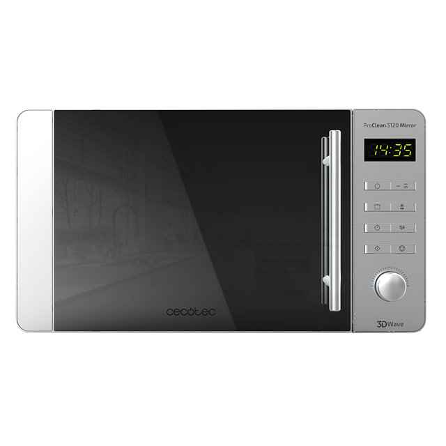 El microondas ProClean 5120 Mirror de 20 litros con dise?o elegante y frontal MirrorDoor marcar? la diferencia en tu cocina. Dispone de la tecnolog?a 3DWave, un sistema de ondas altamente eficiente que envuelve al completo los alimentos. Sus 700 W de potencia repartidos en 5 niveles se ajustan a todo tipo de platos. Adem?s, cuenta con un grill de 800 W de potencia que permite asar, dorar y cocinar. Sus 8 programas predeterminados cocinan diferentes alimentos con los mejores resultados. El revestimiento de su interior es Ready2Clean para agilizarte una limpieza impecable. No tendr?s que estar pendiente del final del cocinado, ya que su avisador ac?stico te informar? cuando est? la comida. La pantalla LED muestra el programa seleccionado y el tiempo exacto. Adem?s, su programa de Inicio autom?tico te calentar? la comida justo a la hora que deseas comer. Y protege a los m?s peque?os con su seguro infantil.