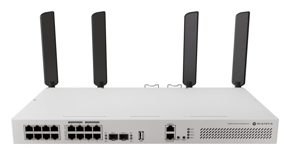 Mikrotik CRS418-8P-8G-2S+5axQ2axQ-RM. Capa del interruptor: L2/L3. Puertos tipo b?sico de conmutaci?n RJ-45 Ethernet: Gigabit Ethernet (10/100/1000), Cantidad de puertos b?sicos de conmutaci?n RJ-45 Ethernet: 17, Puerto de consola: RJ-45. Est?ndares de red: IEEE 802.3af, IEEE 802.3at. Energ?a sobre Ethernet (PoE). Montaje en rack, Factor de forma: 1U