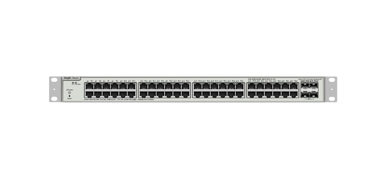 Ruijie Networks RG-NBS3200-48GT4XS-P-V2. Tipo de interruptor: Gestionado, Capa del interruptor: L2. Puertos tipo b?sico de conmutaci?n RJ-45 Ethernet: Gigabit Ethernet (10/100/1000), Cantidad de puertos b?sicos de conmutaci?n RJ-45 Ethernet: 48. Capacidad de conmutaci?n: 176 Gbit/s. Energ?a sobre Ethernet (PoE). Montaje en rack