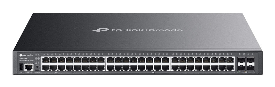 TP-Link Omada SG5452XMPP. Tipo de interruptor: Gestionado, Capa del interruptor: L3. Puertos tipo b?sico de conmutaci?n RJ-45 Ethernet: Gigabit Ethernet (10/100/1000), Cantidad de puertos b?sicos de conmutaci?n RJ-45 Ethernet: 48, Cantidad de puertos USB 2.0: 1, Puerto de consola: RJ-45. Tabla de direcciones MAC: 16000 entradas, Capacidad de conmutaci?n: 176 Gbit/s. Est?ndares de red: IEEE 802.3ad, IEEE 802.3af, IEEE 802.3at, IEEE 802.3bt, IEEE 802.3x. Energ?a sobre Ethernet (PoE). Montaje en rack