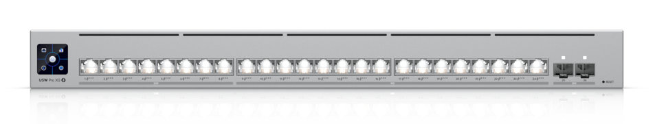 Ubiquiti UniFi Pro XG 24 PoE. Tipo de interruptor: Gestionado, Capa del interruptor: L2/L3. Puertos tipo b?sico de conmutaci?n RJ-45 Ethernet: 10G Ethernet (100/1000/10000), Cantidad de puertos b?sicos de conmutaci?n RJ-45 Ethernet: 24. Tabla de direcciones MAC: 128000 entradas, Capacidad de conmutaci?n: 460 Gbit/s. Conector el?ctrico: AC/DC. Energ?a sobre Ethernet (PoE). Montaje en rack, Factor de forma: 1U