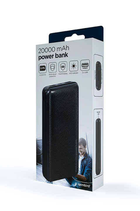 Home > Tablets Smartphones > Baterías externas > POWERBANK GEMBIRD 20000mAh 1x microUSB A 2x USB-A NEGRO