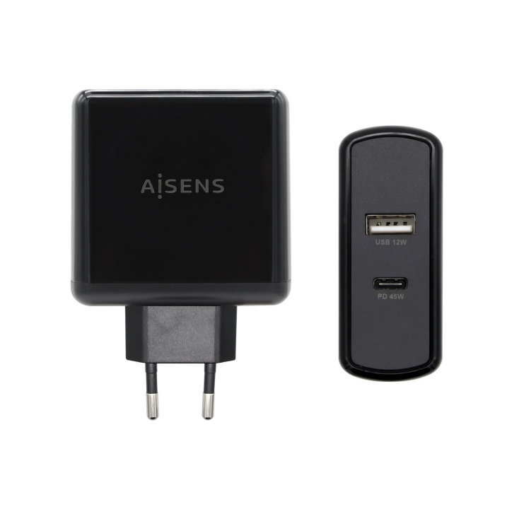 Home > Tablets Smartphones > Cargador de dispositivos móviles > CARGADOR 57W AISENS 1xUSB-C PD3.0 45W 1xUSB-A 5V 2.4A 12W NEGRO