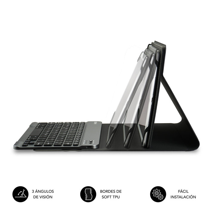 SUBBLIM Funda con Teclado KEYTAB PRO BLUETOOTH 10,1" Black, QWERTY, Espa?ol, 5 mill?n de caracteres, Cualquier marca, Negro, 25,6 cm (10.1")