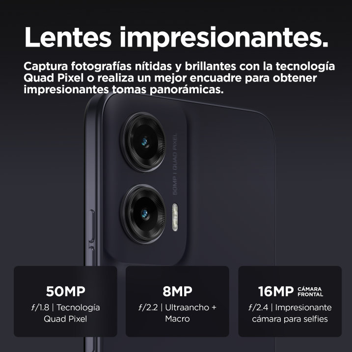 Los momentos m?s importantes de la vida merecen un gran escenario. Descubre el moto g35 5G. Con una enorme pantalla FHD+ de 6,72??, tus pel?culas, juegos y videollamadas cobran vida incluso con mucha luz gracias a los 1000 nits de brillo m?ximo. Todo ello acompa?ado por un sonido Dolby Atmos? multidimensional en altavoces est?reo o en tus auriculares favoritos. Haz fotos espectaculares con el objetivo ultra gran angular o captura fotos vivas y definidas con cualquier luz gracias a la c?mara de 50 MP con tecnolog?a Quad Pixel. Disfruta del asombroso dise?o ultrafino de primera calidad, que incluye la opci?n del exquisito tacto del cuero vegano. Disfruta de un rendimiento 5G ultrarr?pido con el procesador de ocho n?cleos, y consigue adem?s 8 GB de RAM y hasta 256 GB de almacenamiento.(2,4) Adem?s, disfrutar?s de tus actividades sin preocupaci?n gracias a la bater?a de larga duraci?n. El moto g35 5G est? dise?ado para los grandes momentos.